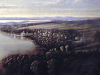 “View of Bath From the West” by A.J.Russell was restored along with its period gilt frame in 2002. “The View of Cayuga Lake from Pumkin Hill 1856” was given a complete conservation treatment in 2001 and it is owned by the Howland Stone Store Museum (Sherwood), Aurora, NY. The painting was donated to the Howland Stone Store Museum by Patricia Howland White, Faith Howland Rick, and Susan Howland Crumrine. Conservation of the Aurora painting was funded by the Cayuga Lake National Bank of Aurora, NY. The View of Bath measures 27″h x 42″w and the View of Aurora measures 27″h x 40″w. – both are oil on canvas paintings.