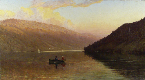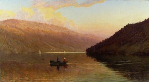 If this writing should be thought too much a record of my own jaunts and experience, I may be pardoned because by it may be told from actual experience some things that may illustrate the aspects of our lake and its familiar history. And I may her be allowed to tell of one memorable day, the 18th of October, not the earliest days, but perhaps of thirty years ago. The morning was of October’s best, not of the clearest but of the softest. The autumn colors were at their highest and mellowed by a warm Indian summer haze. A mile or two distant the village stores and other buildings seemed like the marble glories of Venice backed by an American autumn, casting their softened reflections in the soft blue water. Every field, wood or tree partook of the autumn color, and even the rocks on both sides of the lake seemed of another hue and all the leaves over and through them seemed to have a softer if not richer color than they had ever shown before. I rowed as far as Staghorn Point and rested there for a while taking in all the views in all their variety and beauty, up the valley beyond the head and on both sides downward almost to the village. The lake was hardly ever ruffled by a breeze and took on the soft blue of the sky. The leaves were falling fast and silently covered the grounds with a colored carpet. The glens were very silent and I met no human life on the shore during he whole day. Then I rowed across the three Mile Point and thence under the wooded rocks to Fall Brook Point, landing some time on the way. At Fall Brook came the sunset, and I saw the full and lilac tinted moon rise over the eastern hill. At dark I took boat again and rowed directly through middle of the lake nine miles to the village. The night was perfectly still and clear, the stars thick but dimmed by the moonlight. It was a strange feeling then, so surface of the water showed, with the moon and stars reflected below me. It seemed as if I were afloat in space and earth had disappeared. But I seemed to have a companion for a bird gave a call behind me soon after I left Fall Brook and repeated it many a time, apparently the dame distance behind me, until I reached within one mile of the village. It was the cry of a bird I had often heard on the shore of Long Island Sound, known there as the Old Wife (Fuligula). Many were these trips that I took alone or in company, and how memory is filled the varying pictures that nature painted there day after day and year after year of which only the greatest artists can give the least suggestions. It was always a hard thing to see the upper part of the lake in winter. The roads were long and rough if bare, and drifted full when the snows came. On the lake the winds and waves of winter forbid passage, except to the hardiest men. When the lake was only partly frozen and partly open there was no thoroughfare. The lake freezes its entire length only once in five or six years and it is then quite treacherous. So some excuse may be made for the dwellers in the snug village for not venturing on long and inclement rides but I can remember once a sleigh ride as far as Hall’s Dock. It was on the fourteenth of February, not of much antiquity, but of only sixteen years ago. It was a mild winter morning after sharp frost in the night. There was no wind and the sun shone brightly. The sleighing was fine and we arrived all right at our destination. How genial and warm the air and sunlight felt, that tempted bees out of their hives and started the brooks. We had rather a hard tramp from the hill when we left our team to the shore, through deep snow, but we felt paid when we got to the lake. That was unbroken ice covered with snow and we found it to be two feet thick. But we wee astonished at the aspect of the hills, the long valley and the glow of color over all. The summer in sunset glow was never more beautiful or tender. It told us what a smiling face winter can sometimes put on. And it tells us too what can come over lake and hills between the sublimity and gloom of our clouds and blizzards. Maybe there is room here to attempt some description of colors of the hills on that day, and particularly towards sunset. The warmth o color in the woods was something we were unprepared for, it was rich on the bare trees and boughs as on the leaves of autumn and more harmonious. The far distances pearl and opal, and even the snows had a rosy hue. But the splendor of the day was ruinous to our sleighing and we had an adventurous ride home. The memory of that effect of glow and color is yet as clear as it was that day. There were other reasons that we went up the lake not ostensibly for pleasure, but which probably produced more of that article than any other, and the chief reason was for recording with pencil or color a few of the interesting or beautiful objects or aspects there. Nearly as early as our first geological expedition William Beauchamp and I made a memorable trip in a row boat, making a hasty sketch. Then we began to take colors and easels, spending a week or more perhaps on Fall Brook, Staghorn, or other points as fancy or material moved us. Mr. Edward Reuel Smith went with me afterwards and sometimes I went alone. Our pursuit was a great wonder to the natives, suspicious some were that we might be exploring for gold or other valuable stuff than scenery. Albert L. Edwards also used to go with us and often he went alone. Fall Brook Fall was a favorite as well as a beautiful subject and many pictures we painted of it. Elliott’s picture of it at an earlier day has been mentioned above. We had many adventures, delays by weather and humorous times of intercourse with the people of the shores. Once after spending a week and making some studies it came Saturday night and we had to start for home. Mr. Smith had drawn a fine chestnut tree, had laid in all its background thinking to finish the tree at our next visit. When he got there the next week or so and went to paint it he found the tree not